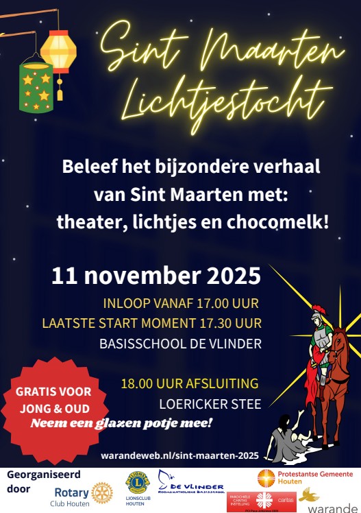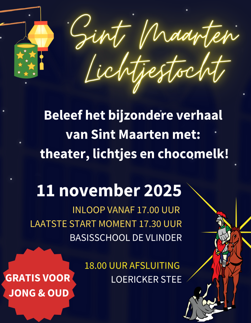 Op 11 november brengen we het eeuwenoude verhaal van Sint Maarten tot leven. Niet als stoffig verhaal, maar als iets dat nú relevant is. Dit jaar lopen we weer samen een lichtjestocht van basisschool De Vlinder naar verzorgingshuis De Loericker Stee.